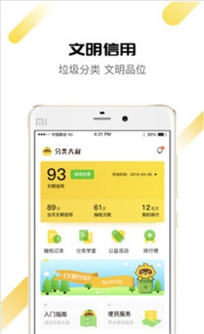 1) 查看自己垃圾分类被抽检情况及文明信用分、排名