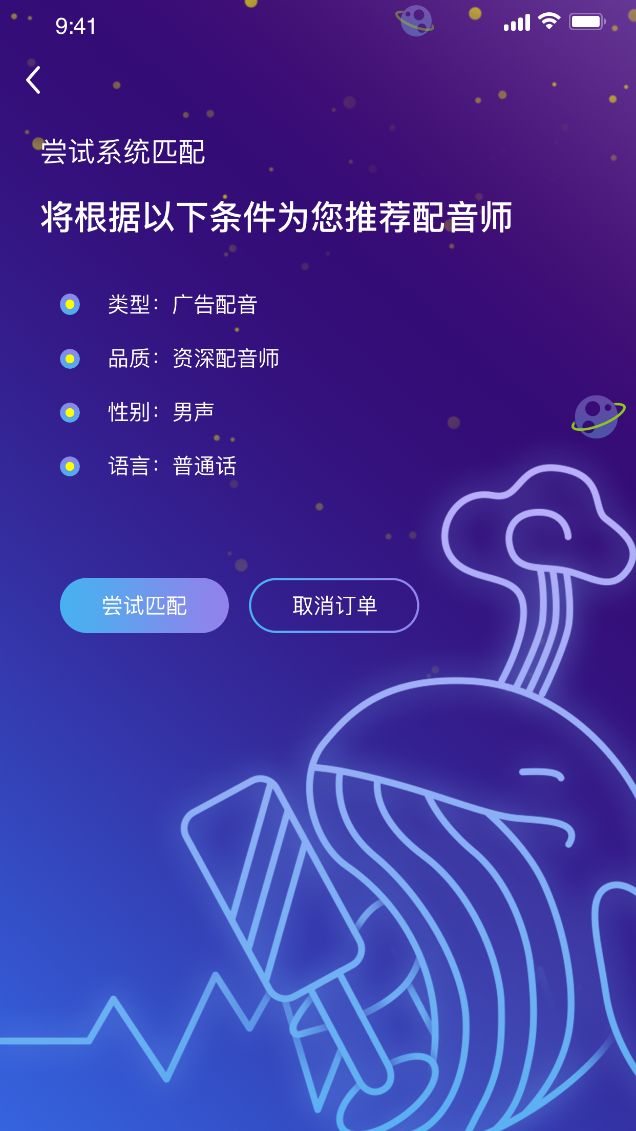 发布订单,选择要求,5分钟就可获得专业配音!