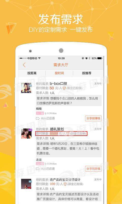 2.找人快速:你可以浏览页面选者心仪的同城服务直接租人。也可以发布你的需求找到适合的人直接租人。5分钟12人应邀,节省时。