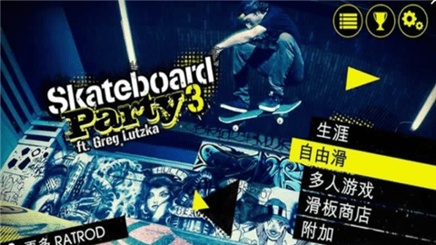 《滑板派对3 Skate Party 3》是一款3D特技滑板类体育游戏。在游戏中玩家将会在这款游戏中完全体验到真实滑板场景,挑战极限。这款游戏自持WIFI或是蓝牙链接对战,只要你的朋友也在玩的话,就一起较量高低吧。而这款游戏成就系统比较完整,玩家可以通过获得游戏经验来升级自己的人物,定义自己的着装等等,在游戏中你还可以看到世界各地滑板选手的成绩,你排第几呢?完成教程后经验值无限,快来试试吧。