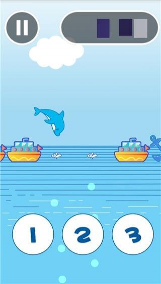 游戏开始后,海豚会不断向前游,中间会遇到船只、椰岛等等障碍。