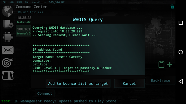 3、这不是真正的黑客行为,而只是游戏,所有的IP都是假的因此你的设备也是安全的,因此你不可能用这款游戏去获得某些人的个人信息。