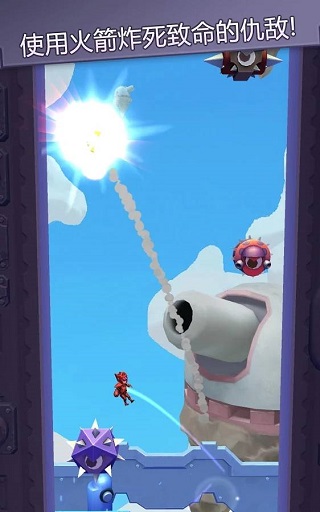 1. 竖版3D飞行射击:采用立体化场景设计,玩家操控角色在纵向空间自由跳跃与冲刺,结合导弹发射实现立体化攻击,突破传统2D射击的平面限制。例如,在狭窄隧道中需通过二段跳躲避激光陷阱,而在开阔区域则可利用冲刺快速穿越敌方炮火。
