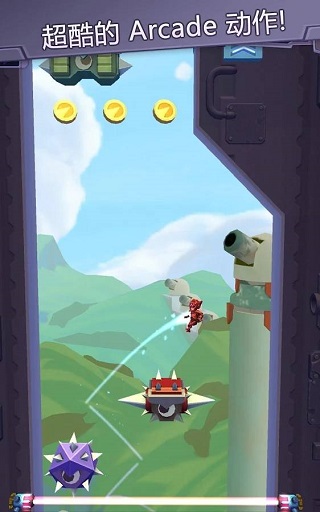 3. 物理碰撞机制:敌人被击毁后会产生连锁爆炸,摧毁周边建筑可触发隐藏金币;角色撞击障碍物会触发不同反馈,如弹跳加速或短暂无敌。例如,在沙漠遗迹关卡中,撞击特定石柱可触发隐藏通道,直达BOSS战区域。