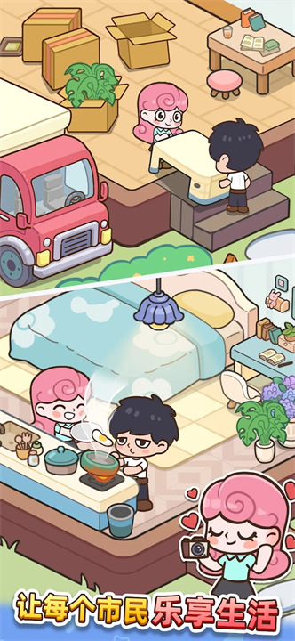 2. 深度市民互动与养成系统:每位市民拥有独立性格、需求及职业属性,玩家需根据其特长安排岗位(如工程师提升科技产出、艺术家增加文化收益),并通过完成市民请求(如修缮房屋、赠送豪车)解锁新内容。市民会经历结婚生子、工作创业等人生阶段,玩家可参与装修房屋、照顾新生儿等互动,增强代入感。