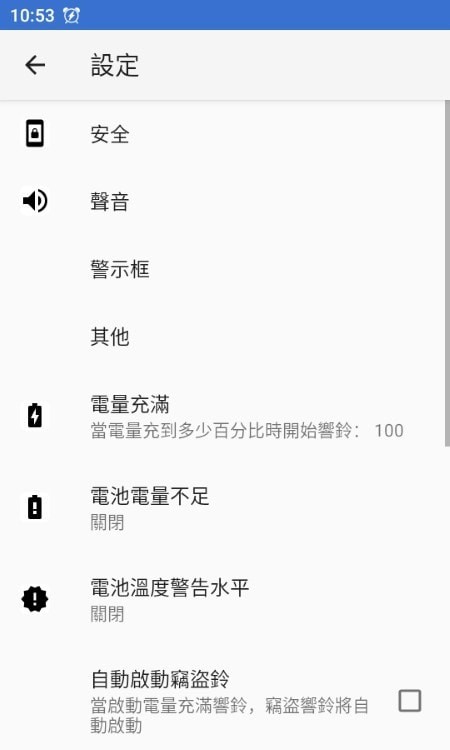 电量提示防盗报警是一款专为安卓手机用户设计的全方位手机管理工具,它集充电提醒与手机防盗功能于一体,为用户提供便捷、安全的手机使用体验。该软件能在手机电池充满电、充电线被拔、手机被移动或被取出口袋等关键事件发生时,通过警铃及语音进行报警提示,有效防止手机电池因过充而损坏,以及因充电线或耳机线被拔而引发的安全隐患和盗窃风险。同时,它还提供了全面的电池信息展示及统计图表,让用户能够详细了解电池的健康状态,是手机安全充电及日常防盗的得力助手。