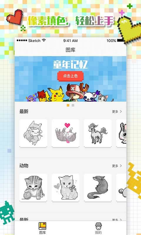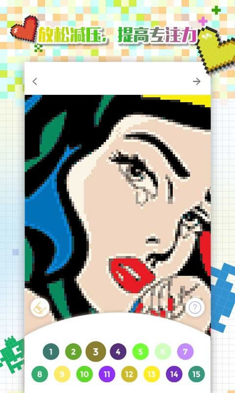 抖音格子画最新版是一款拥有像素风格的单机涂鸦游戏作品,在这款游戏中玩家可以通过点击屏幕,选择不同的方块颜色和图案,进行脑洞大开的格子画挑战,不断拼凑出不同风格的绘画作品,创造属于你的艺术风格!
