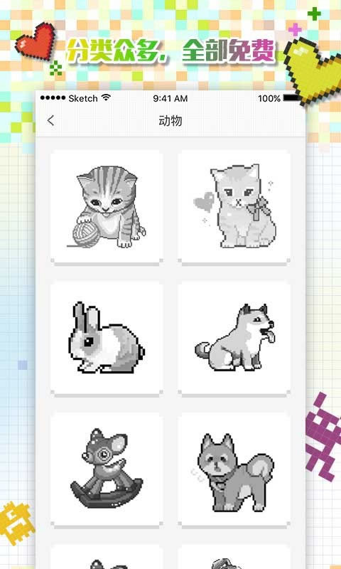 《抖音格子画》是一款小巧且精致的像素画小游戏,是你闲暇放松时的不二之选,大量的格子画图鉴让你轻松上手,也可以自己进行创作,选择不同的方块颜色,拼凑出自己的天地。感兴趣的话,就来下载吧!