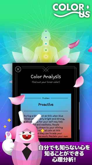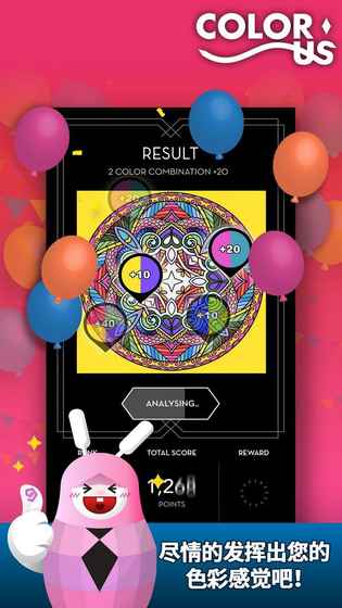 涂色完成后从中来了解您目前的心里状态,请尝试一下只属于ColorUS的色彩来进行心理分析吧。