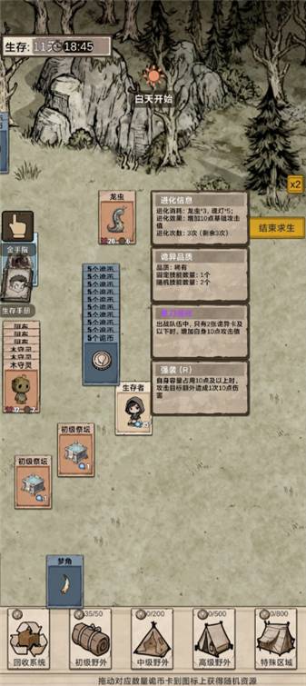 1. 核心玩法:以“堆叠+卡牌+生存”为核心,玩家需通过探索野外获取资源,收容并进化诡异生物(普通/稀有/史诗/传说四级品质),制作装备卡提升队伍战力,抵御夜晚失控怪物的周期性入侵。