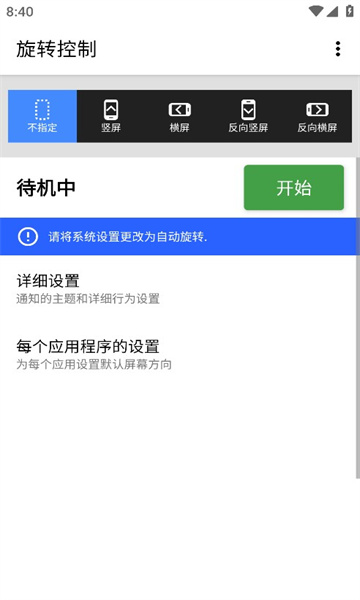 旋转控制安卓版v5.3.5是一款专为安卓手机设计的屏幕方向控制软件。它允许用户自定义屏幕的方向,无论是横屏还是竖屏,都可以轻松锁定或自动调节。这款软件以其强大的功能和便捷的操作赢得了广大用户的喜爱,成为安卓手机用户必备的屏幕控制工具之一。