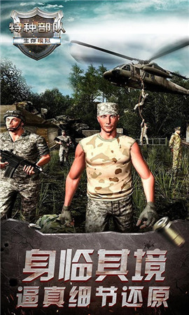 《特种部队生存模拟》是一款高度还原军事训练的模拟生存类手游,玩家将以一个特种部队队员的身份出现在一个荒岛上,通过艰难的野外特训,通过一切办法生存下去,逼真的细节还原,有很强的代入感,喜欢的玩家快来下载吧!