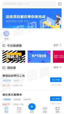 海量项目,自由选择:汇集开发、设计、市场运营、产品四大行业项目
