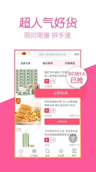 小编这次为大家分享来了款超划算的领券软件-小米淘,用户在平台上可以感受超轻松的购物体验,天天都有大量优惠券发放,可以先领券再购物,这样的话,购物就会更实惠,商品品类丰富,全场低价,低至1折包邮,每天精选上百家品牌限时特卖,超多优质好货任你选,9块9专区,各种白菜价好物,买到即是赚到。
