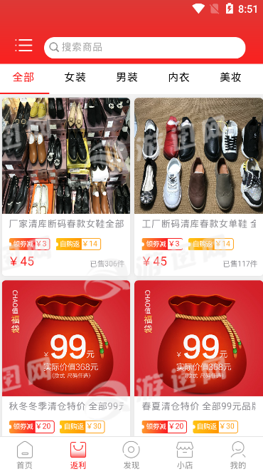 5、品牌特卖:千余家知名品牌,服装、美妆、居家、母婴、食品、鞋包、数码电器任意返!