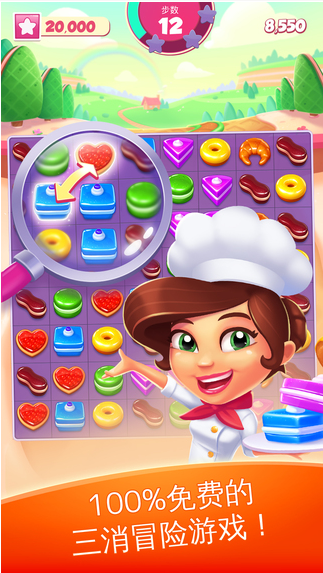 甜点消消乐是一款由gameloft开发的休闲消除类手机游戏,于2014年11月27日正式发行。游戏以甜点世界为背景,采用精美的2d画面呈现,将传统的三消机制与丰富的剧情冒险系统相结合,为玩家带来全新的游戏体验。在游戏中,玩家需要通过斜向移动消除各种甜点来获取资源,解锁姜饼园、清泉林等多样化的主题地图。游戏还支持好友协作与排行榜竞技,让玩家在享受消除乐趣的同时,还能与好友互动、比拼高分。此外,甜点消消乐还包含了时间冻结道具、甜点重组功能等特色系统,以及丰富的每日任务和主题限时活动,为玩家提供了更多的挑战和奖励。