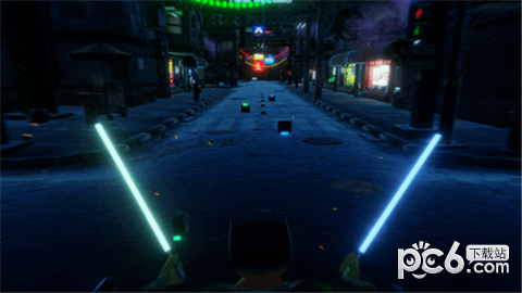 战斗!军刀是一种独特的街机游戏,你的目标是在方块攻击你时将它们砍掉。它们完全符合音乐的节奏。你有两把光剑,所以你必须听两边的话。此外,每个立方体都指示需要匹配的方向。当心那些密集的转向灯!