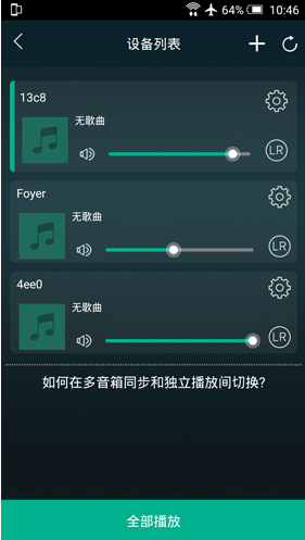 2. 软件支持连接手机wifi,控制同一网络环境下的蓝牙音箱,实现多房间同步播放。