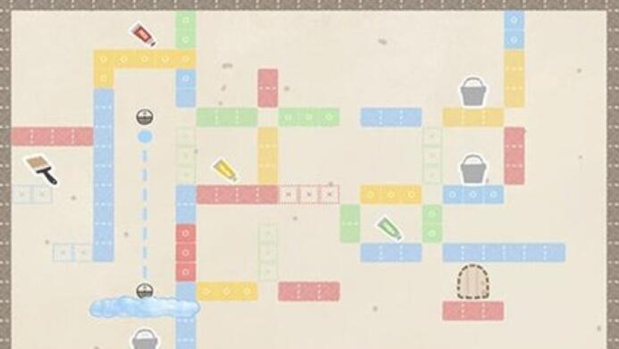 3. 道具组合系统:关卡内散落刷子、钥匙等道具,玩家需灵活组合使用,例如拾取刷子后靠近虚线门会自动绘制入口,而钥匙则需与特定颜色锁匹配才能开启隐藏区域。