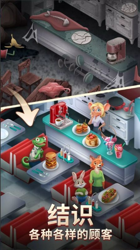 1. 合并升级机制:游戏的核心玩法在于合并咖啡屋,每次合并都能使店铺升级,解锁更多功能和装饰。