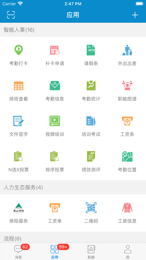2. 根据需要选择相应的功能模块,如考勤排班、工资条查询等。