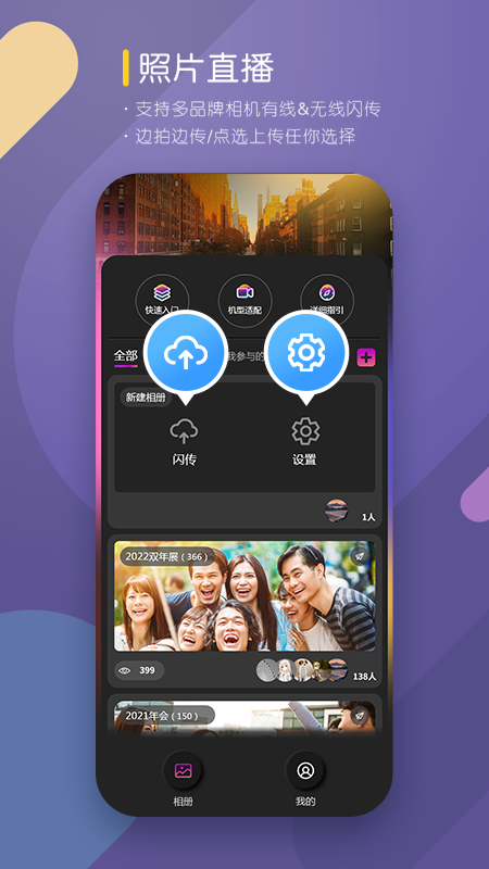1. 支持有线和无线方式连接相机,实现了边拍边传的功能,照片1秒即可同步至云端,大大提高了摄影师的工作效率。