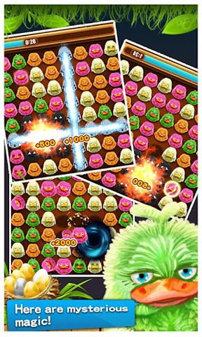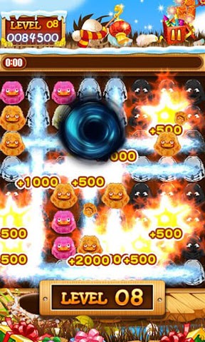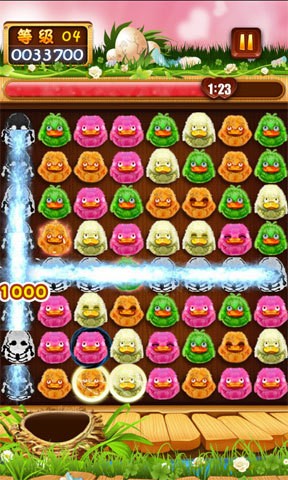 2. 合成系统:当三个以上的小鸭靠在一起的时候,就会合成具有超能力的旋风型、炸弹型或电击型鸭子,增强消除效果。
