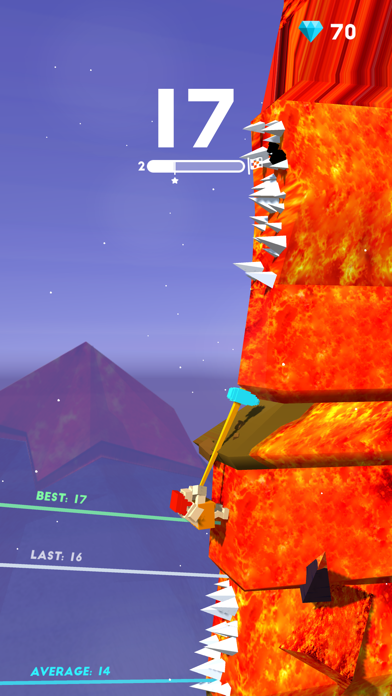 熔岩登山者是一款充满挑战与乐趣的休闲益智手游,玩家将扮演一名勇敢的登山者,踏上攀登险峻熔岩火山的冒险之旅。游戏画面精致简洁,色彩鲜明,场景设定在充满挑战的熔岩山上,给人一种身临其境的感觉。玩家需要使用锄镐来向上攀爬,同时避开悬崖峭壁上的各种障碍物,努力挑战最高峰。熔岩流动、熔岩怪的随机出现等动态元素,使得游戏过程充满了刺激和未知。