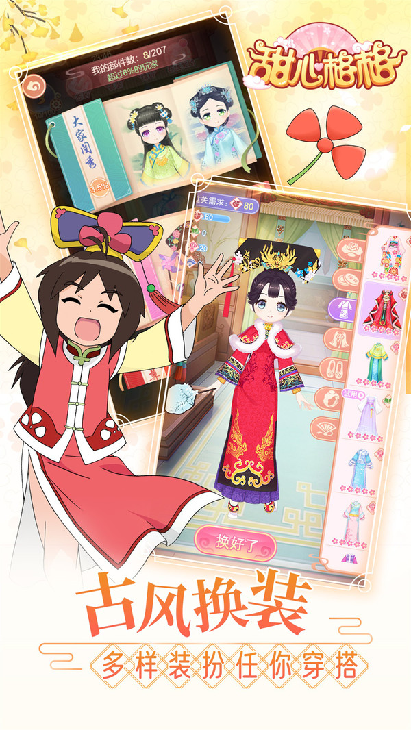 2. 换装玩法:玩家可以根据自己的喜好,为甜心格格搭配各种华丽的古装,提升角色形象。