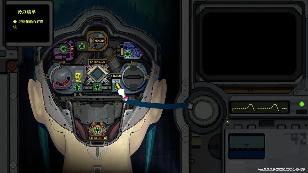 1. 拆解诊断系统:玩家使用螺丝刀、剪线钳等工具拆解机器人后脑或胸腔,检查电路故障,区分物理损坏(如线路断裂)与心理病症(如情感模块过载),需仔细观察零件与线路细节。