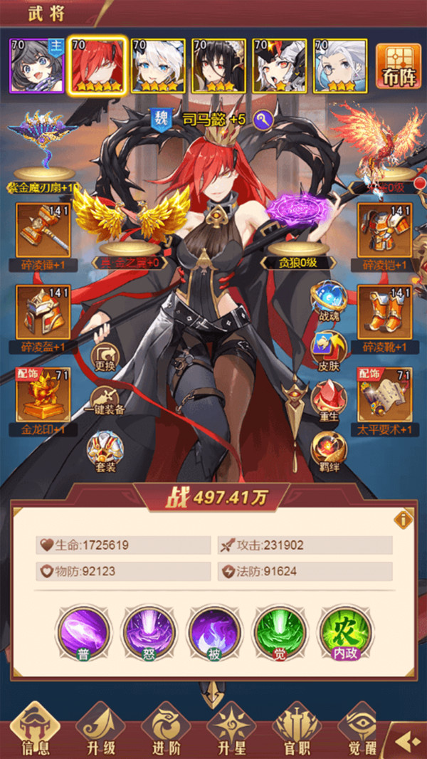 3. 觉醒与神话石:武将每个阶段都有一次觉醒机会,需要消耗觉醒丹,可通过商铺购买。此外,分解不需要的装备可以获得神话石,用于提升武将的装备品质。