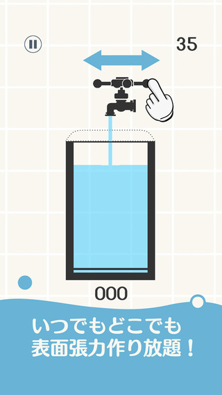 《表面张力》是一个休闲益智类游戏,玩家需要在水漫出之前把水龙头拧紧,杯子里的水越多越好。正如标题所说的,要注意好水面的张力才能更好的通关。