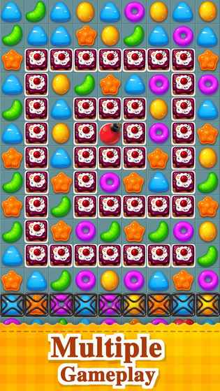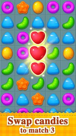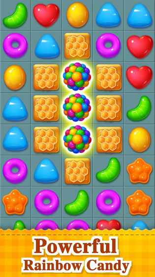 欢迎来到糖果王国,一个梦幻的地方!你可以沉浸在可爱糖果的甜蜜中,用你的手指滑动并匹配3个或更多相同的糖果粉碎,抓住机会粉碎清除所有糖果与障碍物。快来加入游戏成为糖果之王!
