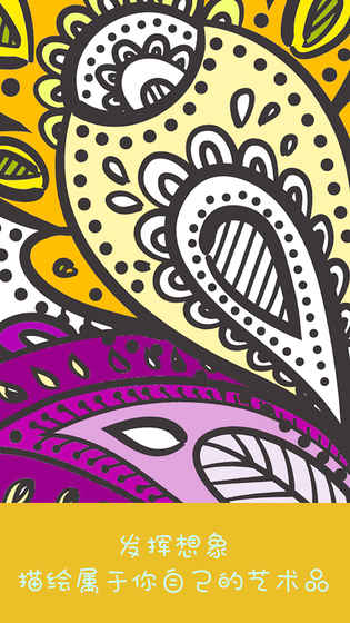 轻轻触碰即可填色,双指开合即可缩放。无论您的心情像骄阳一般的红色还是唯美清新的绿色,轻动手指,来为每幅画作注入生机和活力。发挥想象,构筑你心中的美丽世界吧!