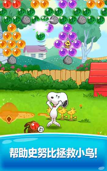《史努比泡泡》是一款经典人气动漫改编而来的休闲闯关手游。游戏画面简洁,玩法丰富有趣,操作简单易上手。游戏中玩家们可以在这里体验到全新的玩法,让你在这里感受到不一样的趣味体验。你还在等什么?赶快下载体验吧。