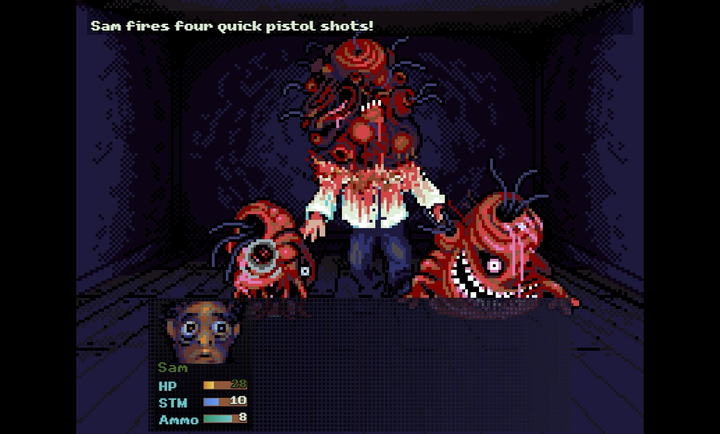 1. 克苏鲁式身体恐怖美学:像素风格下隐藏着血肉蠕动的墙壁、眼球状监控装置等细节,怪物设计融合经典元素(如苍蝇人)与创新设定(如与打字机融合的小说家),视觉冲击力强烈。