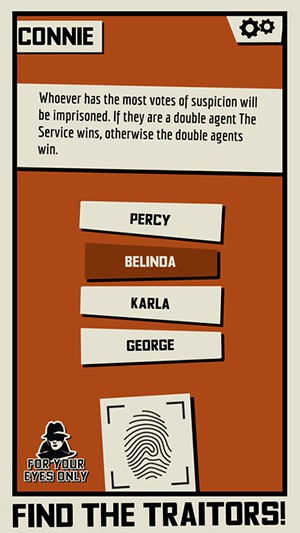 三重间谍是一款简单休闲玩法类策略烧脑手机游戏,简单易懂玩法规则,堪称《谁是卧底》升级版,经典回合制玩法模式,即刻开启烧脑策略之旅,你只有相信自己才能获胜!