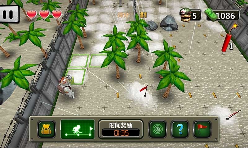 1、你需要用你的推理能力避开危险,包括:沼泽,气体云,飞机,机枪掩体,当然,许多致命隐藏的地雷;