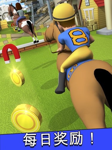 《卡通马术 Cartoon Horse Riding》是由 Lab Cave 提供的一款跑酷类游戏。游戏类似于地铁跑酷,但是这次的场景变换到了更加优雅的马场,还是需要各种搜集金币和道具,解锁新的皮肤等等。不同于地铁跑酷的是,你还可以将并排的马手撞出赛道外,喂你的马儿吃草。喜欢的朋友快来试试吧~