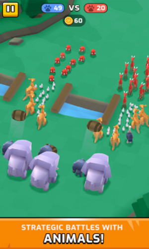 动物大混战是一款充满趣味和挑战的3d卡通风格动物对战游戏。在最新版中,玩家将带领自己的动物大军,在各种丰富多样的场景中展开冒险和战斗。游戏融合了策略、动作和冒险元素,为玩家带来一场别开生面的动物世界之旅。玩家需要收集不同种类的动物,组建强大的军团,利用动物的特性和技能,制定合理的战斗策略,打败敌人,占领更多的地盘。
