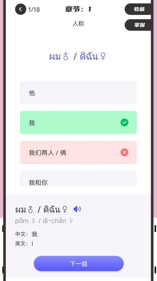 2. 学习操作:在学习界面,用户可以选择课程进行学习,每个课程都包含详细的讲解和练习。用户还可以通过词汇库查看和记忆泰语词汇。