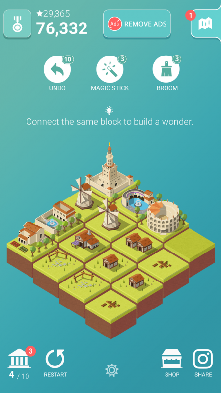 1、滑動並合併方塊,組成進階建築物;
