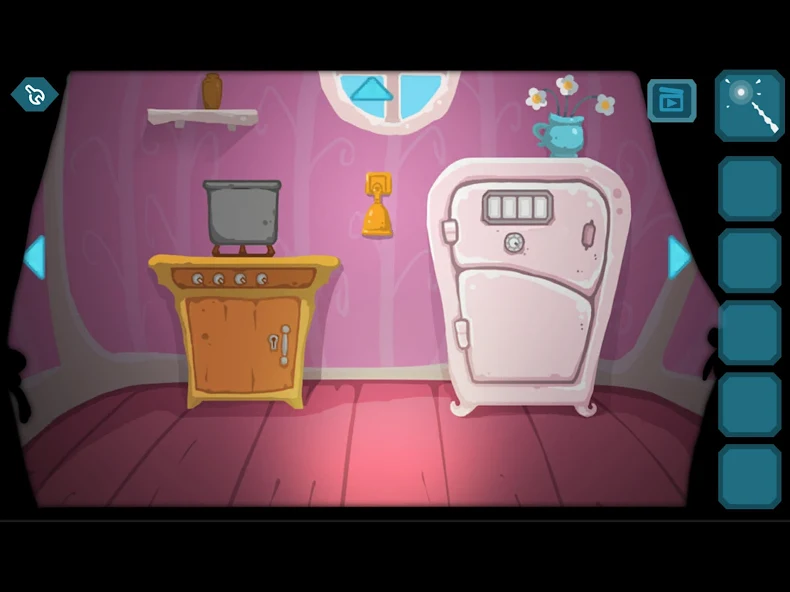 2. 多线索整合:部分谜题需结合多个场景的线索破解。例如,冰箱密码需观察冰箱图案与挂饰符号的对应关系,通过符号数值相加得出密码“1245”;灶台生火则需将冰箱上的按钮图案旋转至对应位置。