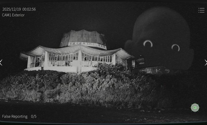2. 异常现象识别与上报:异常现象包括物体凭空消失、墙壁渗血、监控画面雪花屏干扰等,部分异常仅在夜视模式下可见。玩家需点击屏幕右下角的眼睛图标切换红外摄像头,发现异常后点击绿色检测图标排查线索,确认后上报以推进任务。若累计四个异常未通报,游戏将强制失败。
