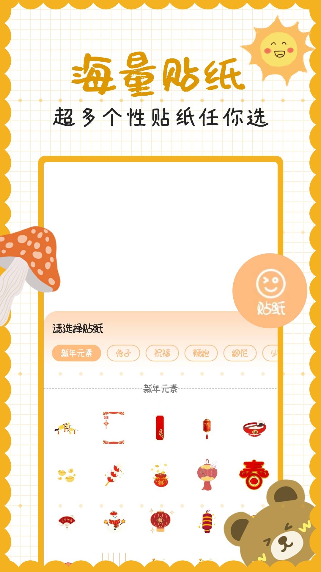 2. 自由排版功能:支持背景、文字、图片、贴纸等元素的自由排版,用户可以根据自己的创意进行个性化设计。