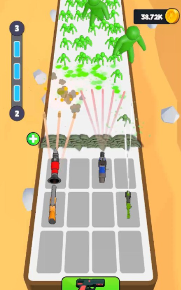 1. 合并升级系统:玩家可以将相同的枪械合并成更高级的武器,提升火力与射速,轻松应对越来越强大的敌人。