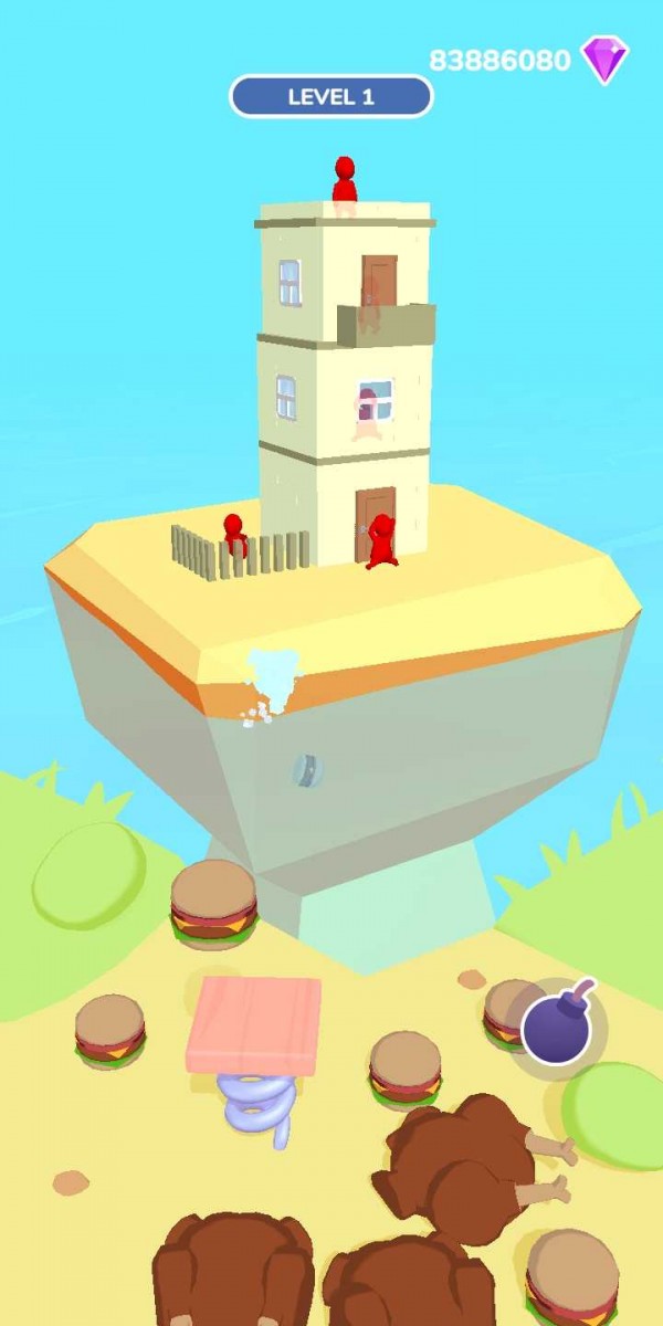 1. 投掷与爆炸:玩家需要准确地向目标投掷鸡腿、汉堡等爆炸物,利用它们的爆炸威力摧毁建筑物和敌人。投掷的角度和力度需精心计算,以达到最佳破坏效果。