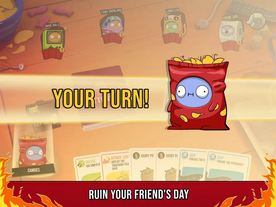 2. 动态卡牌系统:每张卡牌均配备专属动画,如“不”牌触发时会有夸张拒绝特效,增强沉浸感;新增“内爆猫”等特殊卡牌,牌面向下时抽中会秘密放回牌堆,增加不确定性。
