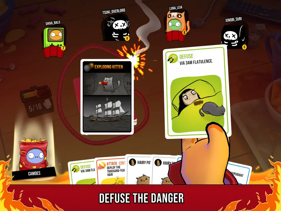 2. 风险预判:通过“预见卡”或“洗牌卡”控制“爆炸猫”位置,避免在牌堆底部集中放置危险卡牌;观察对手手牌数量,推测其是否持有关键功能卡。