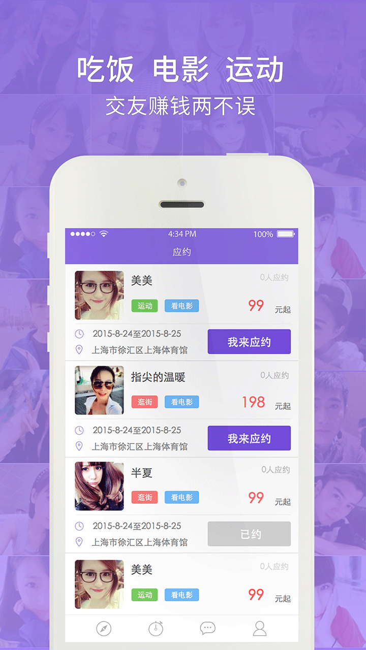 1. 应约方出租时间:创新性地允许应约方出租自己的时间,满足双方快速达成需求匹配,推进社交进程。